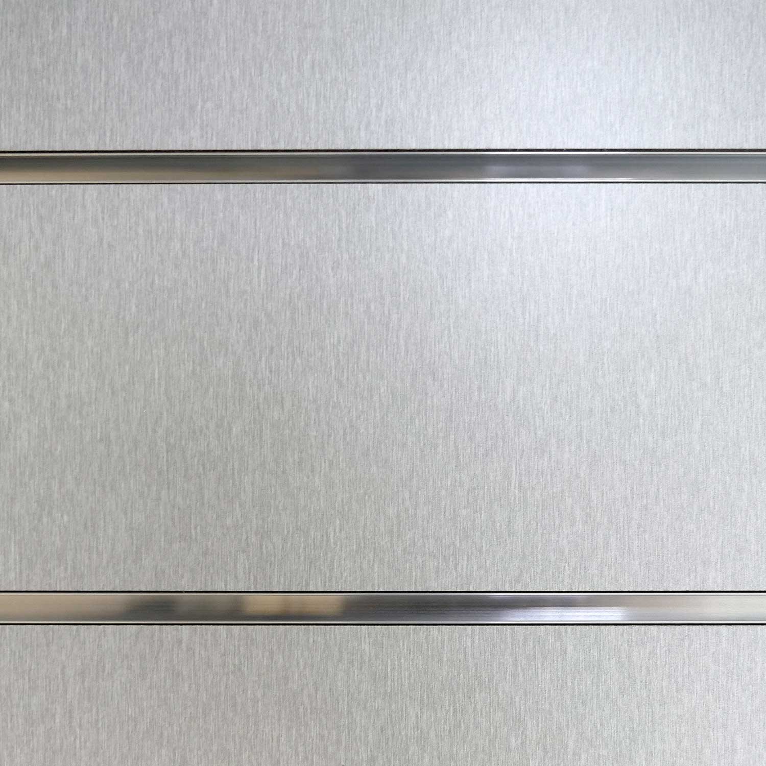 Wind Mill Standard Slatwall is available in Brushed Aluminum. This attractive TFO gives the appearance of real brushed aluminum metal at a fraction of the cost, while providing a durable metal look. Add milled aluminum T-sertsTM to complete the look of a metal wall of while adding considerable strength. Standard Slatwall panels measure 48”H x 96”L x ¾”W with the grooves running either the entire length or height of the panel, evenly spaced 3” on-centers. Manufactured with our exclusive Anchor™ Core, or MDF (medium density fiberboard).