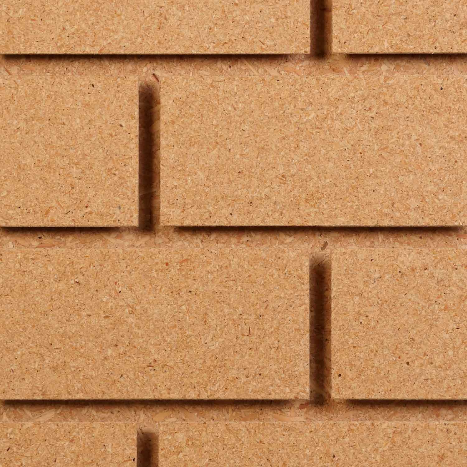 Brickyard™ panels differ from Brickwall™ panels (below). Brickyard™ is a two piece construction with functional grooves measuring every 5¼ inch. Functional grooves are machined every other grout line providing a textured brick appearance. It not only looks great, it has all the functionality of slatwall.